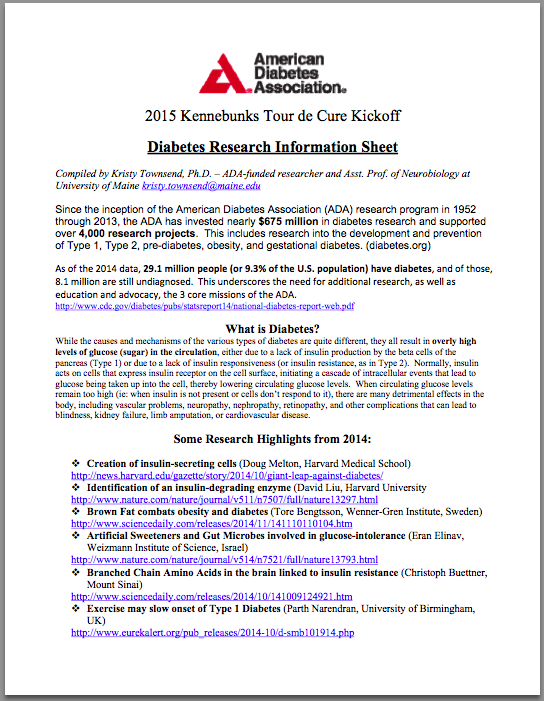 2015 – American Diabetes Association Kennebunks Tour de Cure Kickoff Event