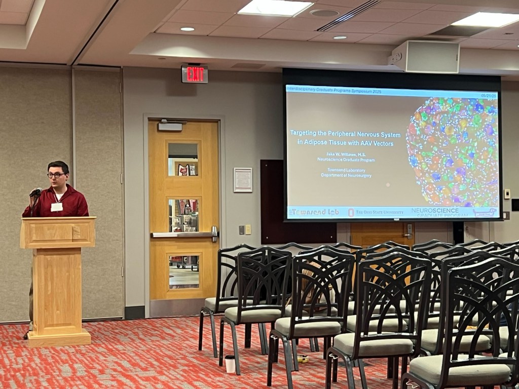 Congratulations to Townsend lab NGP PhD candidate Jake Willows for being selected to present on Targeting the Peripheral Nervous System in Adipose Tissue with AAV Vectors at the Interdisciplinary Graduate Program Symposium of 2025!